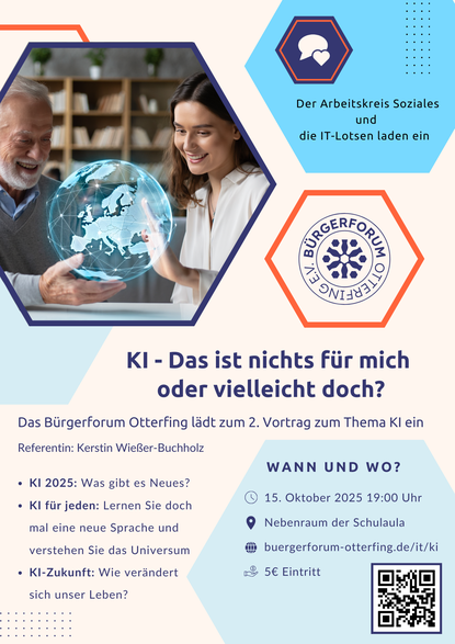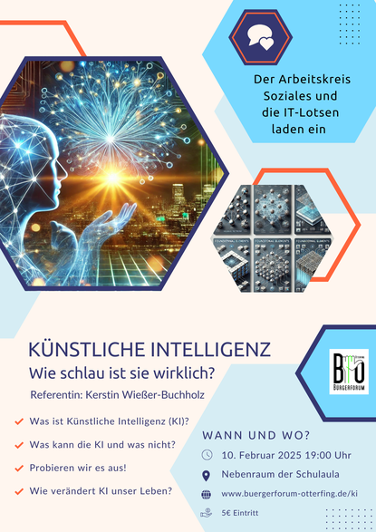 Ein Vortrag, der Hintergrundwissen zum allgegenwärtigen Thema KI bietet und mit Mythen rund um KI aufräumen möchte. Interaktiv erfahren wir, was heute schon möglich ist und wo die Reise hingehen könnte. Faszination, aber auch Nachdenkliches - es lohnt sich für alle Neugierigen.